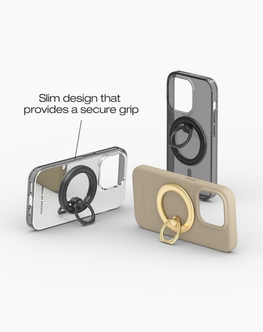 Gjør ditt deksel funksjonelt med en unikt designet ring mount. Dette produktet kommer i et slankt design som gir et sikkert grep. Det er laget av ikke-animalske materialer. Kompatibel med MagSafe telefoner og deksler.