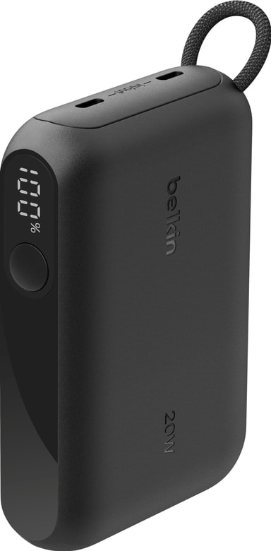 Belkin 10 000 mAh powerbank lader enheten din med en kapasitet på 10 000 mAh, gir hurtiglading via PD 20 W USB-C, støtter dobbel lading og har en praktisk digital skjerm slik at du kan holde kontroll over ladeprosessen.Les mer om produktet