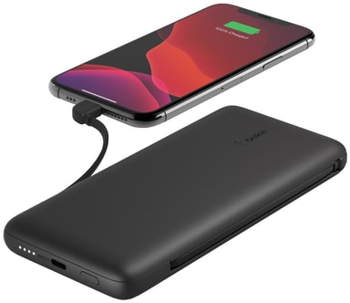 Belkin BoostCharge Plus 10K powerbank kan lade elektronisk utstyr som telefoner flere ganger uten at du behøver eksterne kabler. Den tynne og kompakte powerbanken har USB-C inn/utgangskabel og en Lightning-kabel som kan lade med 18 W hver. De kan sammen lade to enheter samtidig med en utgangshastighet på 23 W. takket være en ekstra USB-C-port kan du også lade powerbanken mens to enheter lades vis gjennomgangsfunksjonen. Et LED-statuslys gir informasjon om strømnivået til powerbanken.