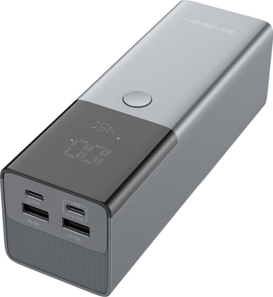 Med Sandstrøm S6P14026 25000 mAh powerbank har du alltid mobilenhetene dine klare takket være en batterikapasitet på 25 000 mAh, maks ladeeffekt på 208 W og 4 USB-C-tilkoblinger for lading av 4 enheter samtidig. Sjekk powerbankens status på det smarte digitale displayet, og ikke bekymre deg for sikkerheten takket være temperatur-, overbelastnings- og kortslutningsbeskyttelse.