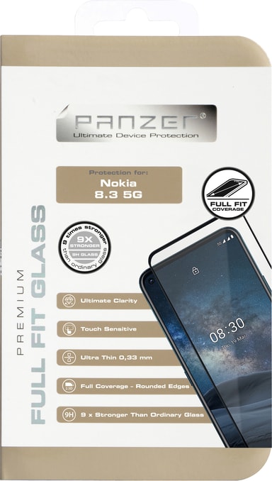• Panzer Full-Fit Nokia 8.3 skjermbeskytter (sort)