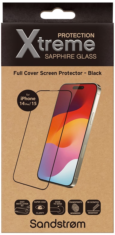 • Sandstrøm iPhone 14 Pro/15/16 Curved Glass skjermbeskytter