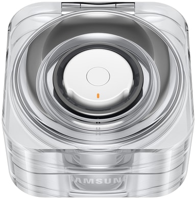Selv når den lades i det krystallklare ladeetuiet, er Galaxy Ring et syn for øyet. Det delikate lyset rundt multifunksjonsknappen indikerer batteriets ladingsnivå. Ladeetuiet kan også lades trådløst, slik at du enkelt kan plassere Galaxy Ring sikkert i etuiet når du er på farten, og deretter legge det på en trådløs ladeplate for enkel lading.