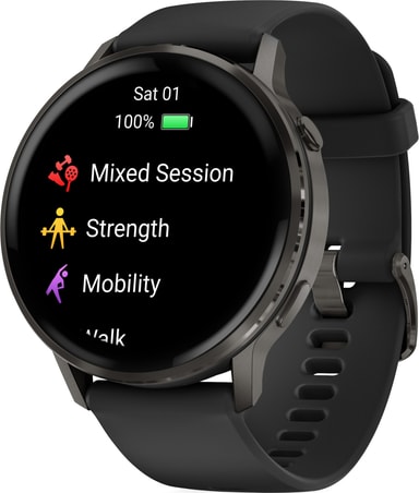Garmin Venu 4 smartklokke tilbyr 24/7 helseovervåking, avansert søvnsporing, EKG-måling og HRV-status, med en levende AMOLED-skjerm og opptil 10 dagers batterilevetid, perfekt for flere sportsgrener og for å ringe.Les mer om produktet