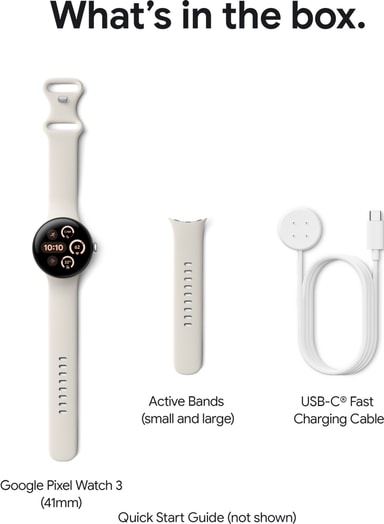 Pixel Watch 3 41 mm lades 20% raskere enn forrige utgave, med et 307 mAh batteri med batterilevetid på opptil 24 timer med Always-on-skjermfunksjonen skrudd på, som gir deg helse- og aktivitetssporing gjennom hele dagen. Ved å bytte til sparemodus får du et lenger batteriliv, opptil 36 timer.