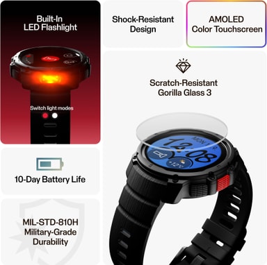 • 1,28" AMOLED-skjerm, Gorilla Glass3