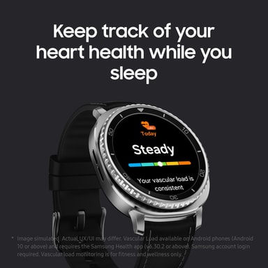 *Tilgjengelig på Samsung Health-appen v.6.24 eller senere og må kobles sammen med Samsung Galaxy-smarttelefoner med Android OS 11 og senere. Innlogging på Samsung Account kreves. Beregnet kun for generell velvære og treningsformål. Ikke beregnet for bruk ved oppdagelse, diagnose eller behandling av medisinske tilstander eller sykdommer. Vennligst rådfør deg med en medisinsk fagperson for rådgivning.