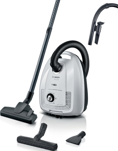 Bosch Series 4 støvsuger BGL38WH3H vil gjøre rengjøringsrutinen din mer effektiv og komfortabel. Den kraftige og langvarige ytelsen er sikret av Bosch Motor Technology og PowerProtect-systemet. Hjemmet ditt blir hygienisk rent takket være HEPA-filteret, mens arbeidsrekkevidden på 10 meter lar deg rengjøre enda større rom på én runde.