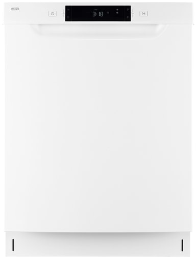 Delonghi underbyggingsoppvaskmaskinen har en ren hvit finish og en innebygd design som passer pent inn under kjøkkenbenken. LED-displayet viser gjenværende syklustid, noe som gjør det enkelt å følge med på fremdriften.
