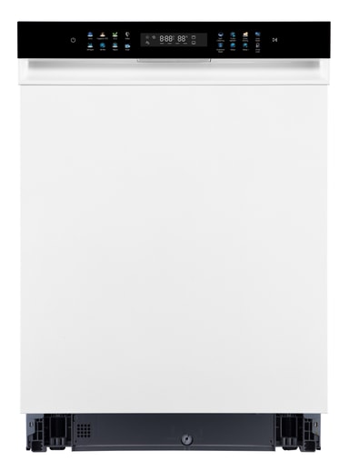 Design: Denne oppvaskmaskinen kommer med innovativt strømlinjeformet design og avanserte funksjoner. Den har høydejusterbar overkurv for fleksibel lasting, innvendig belysning for bedre synlighet, og front- og sokkelpanel.