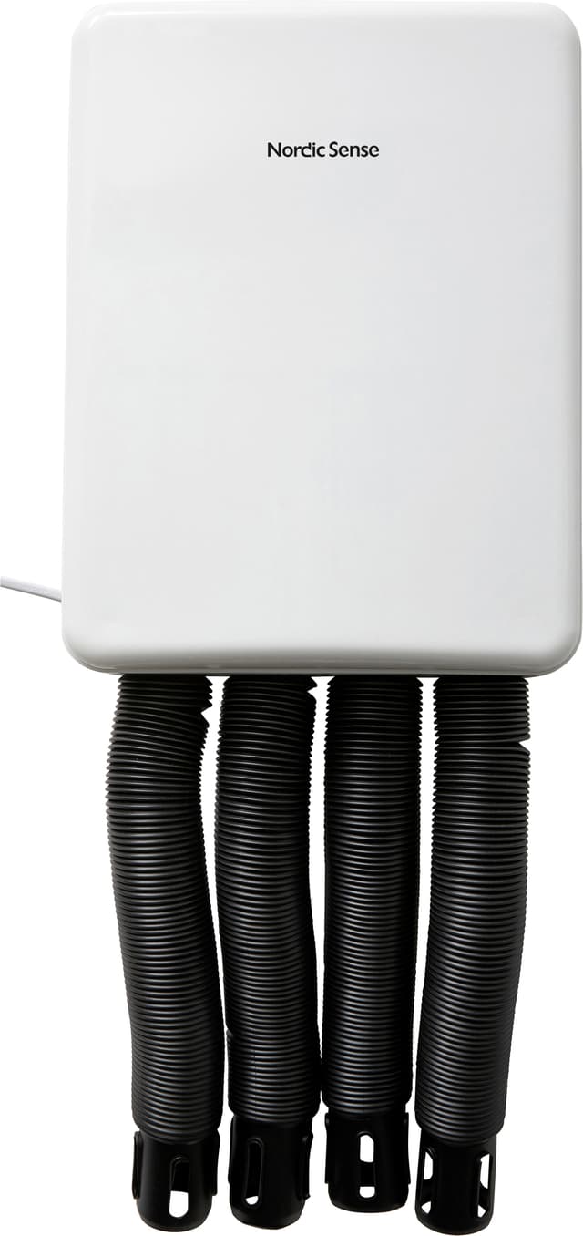 Hold skoene dine tørre med en veggfestet skotørker fra Nordic Sense. Den kommer med justerbar termostat, 2-timers timer, sidekontrollpanel, fire slanger og en effekt på 350 W. Det er bare å velge temperatur og tid for helt tørre sko klar til bruk.