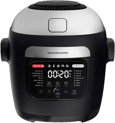 OBH Nordica Actifry multicooker MY741CN0 fungerer både som kokeapparat og airfryer. Du kan sautere, langtidssteke, dampe, steke uten olje og mye mer, alt i ett apparat. Den har en kapasitet på 6 liter og kommer med 14 kokeprogrammer.