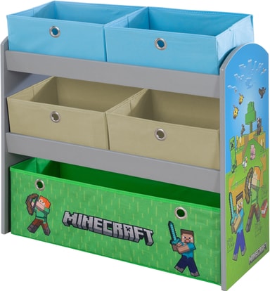 Phoenix Minecraft lekehylle forvandler barnerommet til et pikselert eventyr, med et autentisk design, varig MDF-konstruksjon, og praktisk oppbevaring med fire mindre og en stor tøyeske for leker og bøker.