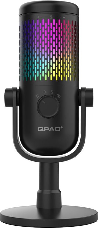 Få en bedre lydopplevelse med QPAD Omnibeam Stream Pro mikrofon med støtte for Hi-Res-lyd, fire lydopptaksmønstre, dynamisk RGB-belysning og en tap-to-mute-funksjon.Les mer om produktet