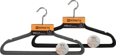 Denne kleshengeren fra Molly er laget av solid plast med en lodden overflate som forhindrer at klærne sklir av. Det smale designet gjør at kleshengeren tar opp lite plass i skapet.Les mer om produktet
