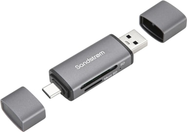 • Sandstrøm 2-i-1 USB-C/USB-A SD kortleser