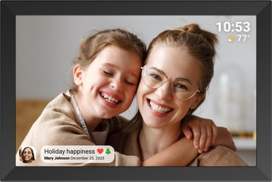 Familie og venner kan sende bilder og korte videoer på opptil 15 sekunder direkte til rammen din fra hvor som helst i verden ved hjelp av den gratis Frameo-appen tilgjengelig for iOS og Android.