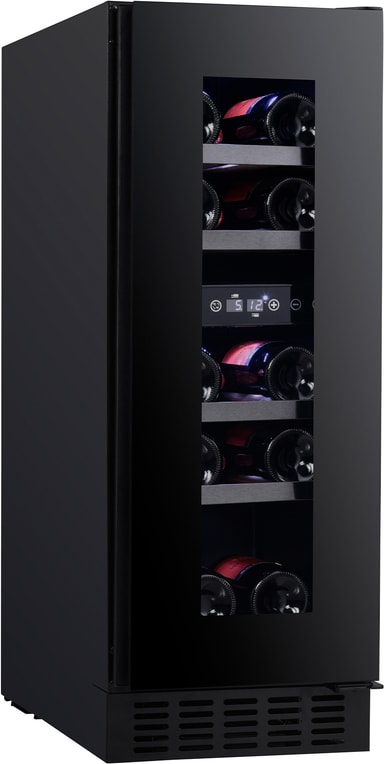 De reversible dørhengslene og det integrerte håndtaket gjør vinen lett tilgjengelig, mens den sorte glassfronten tilfører et snev av lufksus. Justerbare føtter sikrer at vinskapet står støtt på ethvert underlag.