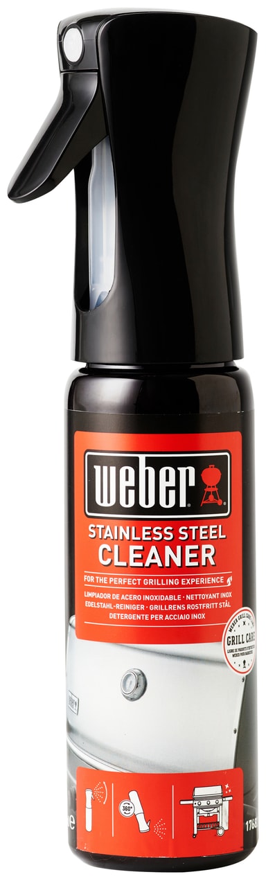 Hold de ytre rustfrie ståldelene på grillen din skinnende rene takket være Webers grillrens for rustfritt stål. Den kommer i et innovativt design som gjør det mulig å spraye fra alle vinkler.