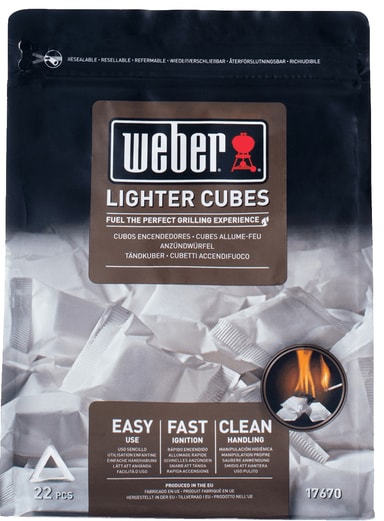 Rask, askefri og miljøvennlig opptenning for kull med Weber Lighter Cubes. Du får hjelp til å kjapt få fart på flammen uten at det går på bekostning av miljøet. Kubene tennes på og sprer ilden til resten av kullet i løpet av sekunder, uten den stramme lukten eller smaken som lightervæske ofte gir fra seg.