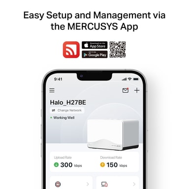 Halo Mesh-teknologien gir en enhetlig nettverksopplevelse, og kobler automatisk enhetene til det sterkeste signalet etter hvert som du beveger deg rundt i hjemmet, noe som eliminerer døde soner og sikrer jevn ytelse.