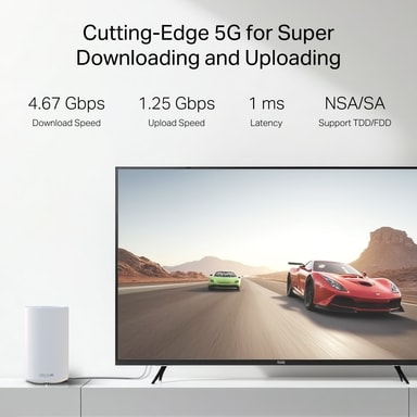 Deco X10 støtter 5G-teknologi via SIM-kort. Med en lav ventetid på bare 1 ms, sikrer den responsive nettverksforbindelser, perfekt for sanntidsapplikasjoner og nettspill.