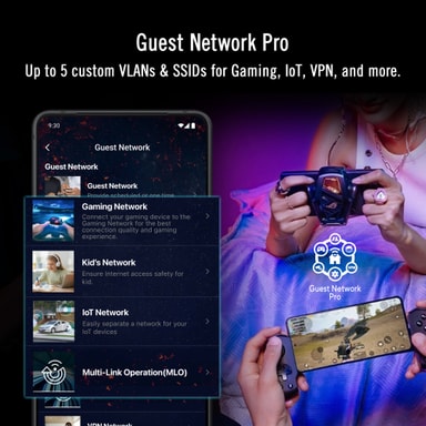 The built-in AI Core intelligently manages your network to keep everything running smoothly. It automatically prioritizes gaming and heavy tasks, reduces lag, and ensures stable performance even when many devices are connected.