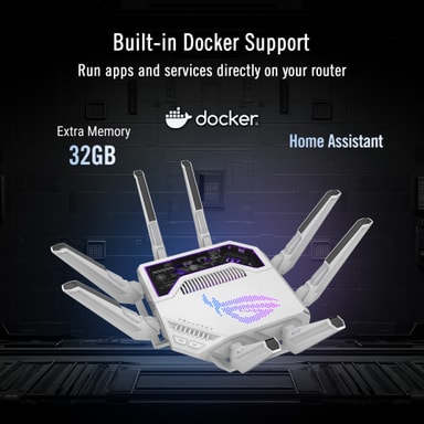 The built-in Docker support lets advanced users run apps and services directly on the router. This makes it easy to manage custom tools, servers, or smart features without needing extra hardware.