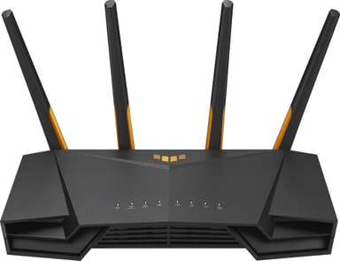 Asus TUF AX4200 router gir en rask, pålitelig og stabil internettforbindelse til alle dine enheter. Dual-band routeren dekker et stort område takket være fire eksterne antenner, og med hastigheter på opptil 4200 Mbps behøver du ikke bekymre deg over fall i hastighet eller signal for uavbrutt gaming, strømming og filmtitting. Nyt en forbindelse som både er rask og sikker med AI Protection Pro.