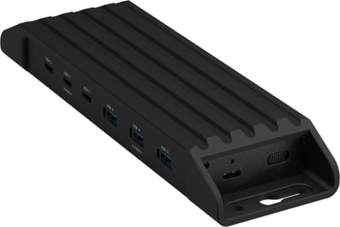 Denne dokkingstasjonen leverer opptil 100 W strøm via ekstern strømforsyning, slik at du kan lade enhetene dine effektivt samtidig som du holder kontakten og sikrer uavbrutt produktivitet under møter.