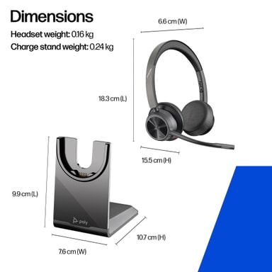 • HP Poly Voyager 4320 MS Teams headset USB-A kabel med ladestativ