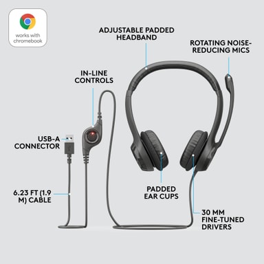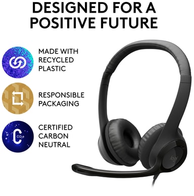 USB-headset fra Logitech med komfortabel hodebøyle og ørekopper. Headsetet leverer ren digital lyd så du kan nyte samtaler, musikk, filmer og spill.Les mer om produktet