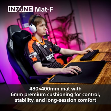 Sony INZONE Mat-F L musematte har en stor størrelse med SlimFlex-base demping. Den teksturerte overflaten er utviklet i samarbeid med Fnatic og balanserer glideevne for mikrojusteringer med fast stoppekraft, og har sklisikker bunn og solide sømmer.Les mer om produktet
