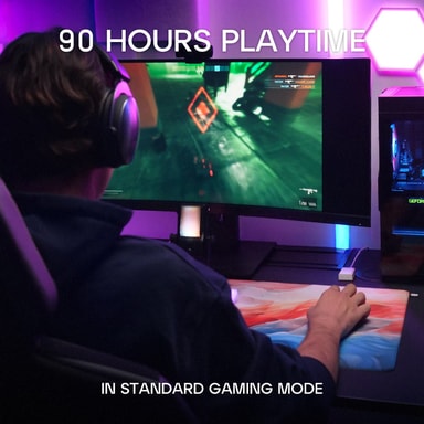 Musen er utstyrt med et 350-mA-batteri og en hullfri ramme. Nyt opptil 90 timers spilletid per lading, som lades opp raskt på kun to timer. Juster innstillingene for overlegen ytelse. Du kan bytte til kablet modus for å fortsette å spille ved å bruke Cherry Xtrfy Ezcord ladekabel når batteriet trenger å lades. Dette gir deg jevne bevegelser og utvidede gamingøkter uten avbrudd.
