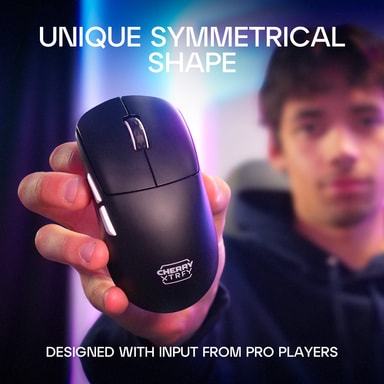 Cherry Xtrfy M68 PRO sort mus er en ultrarask 8K-mus optimalisert for E-sport. Den har en symmertisk form med en ultralav front, og er lettvektig med et solid skall. Musen har ekstremt lav signalforsinkelse og presise pekebevegelser, som gjør den ideelt egnet for skjermer med høy oppdateringsfrekvens.