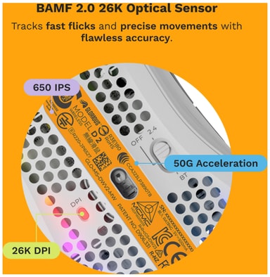 Model D 2 er utstyrt med BAMF 2.0-sensoren, som gir presis sporing og høy følsomhet. Med støtte for opptil 26 000 DPI kan du justere musens følsomhet etter dine preferanser, slik at alle bevegelser spores nøyaktig for konkurransespill.
