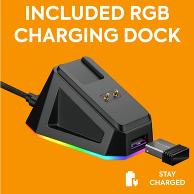 Den inkluderte ladedokken gjør ladingen superenkel - når du er ferdig med å game, er det bare å plassere den på toppen av dokken. I tillegg vil RGB-belysningen gi spilloppsettet ditt en ekstra visuell kraft.