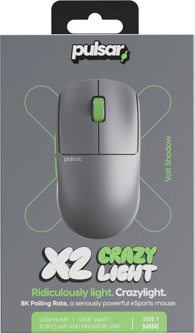 Pulsar X2 Crazylight Mini trådløs datamus har et design på 35g, opptil 32 000 justerbar DPI, 8K pollingfrekvens, trippel tilkoblingsmodus og Pulsar XS-1 Sensor for høy presisjon og nøyaktige musebevegelser.Les mer om produktet