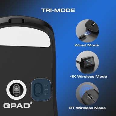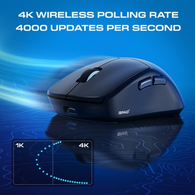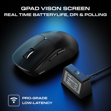 QPAD Mark Model 5R Vision trådløs mus har et ambidekstralt design med en justerbar DPI på opptil 26 000 DPI, en PAW 3395-sensor, tri-mode-tilkobling, en pollingfrekvens på 4000 Hz og en Vision-skjerm for sanntidsvisning av ulike innstillinger.Les mer om produktet
