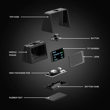 - Vision-skjermen er en liten skjerm som viser ulike innstillinger som DPI-nivå, batteristatus, lysforhåndsinnstillinger og annet.