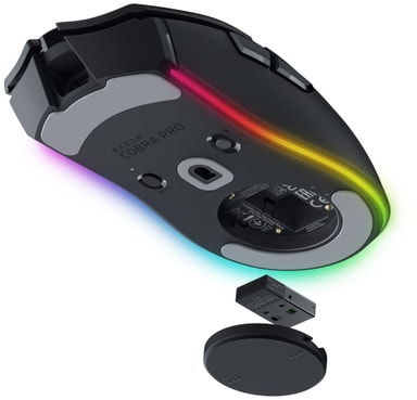 Razer Cobra Pro gamingmus hjelper deg knuse dine virtuelle fiender med en optisk Focus Pro 30K DPI-sensor med justerbar DPI og slitesterke brytere. Musen har også Razer Chroma RGB-lys som synkroniseres med resten av spillutstyret ditt uten problemer.