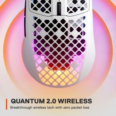 Gjør fiendene dine til pikselstøv med SteelSeries Aerox 3 Wireless gamingmus 2022 med Quantum 2.0 Quantum 2.0 Dual Wireless-tilkobling, TrueMove Air optisk sensor for presise angrep og en lett 66-grams base med 200-timers brukstid.Les mer om produktet