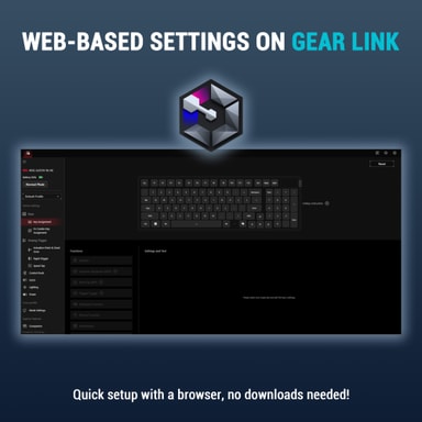 Ved å bruke ROG Gear Link lar dette tastaturet deg tilpasse tastefunksjoner, justere lyseffekter og finjustere hver innstilling for en gamingopplevelse som føles helt din.