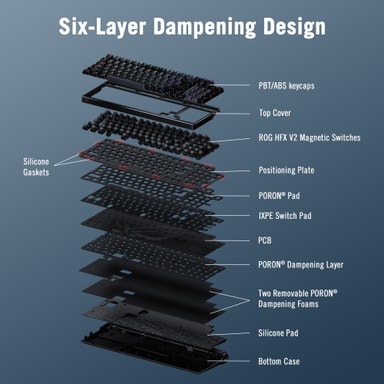 Asus ROG Azoth 96 HE har ROG HFX V2 magnetiske brytere som gir jevne, presise og raske tastetrykk. De tilbyr justerbar aktivering, langvarig holdbarhet og en responsiv følelse som er perfekt for både gaming og skriving.