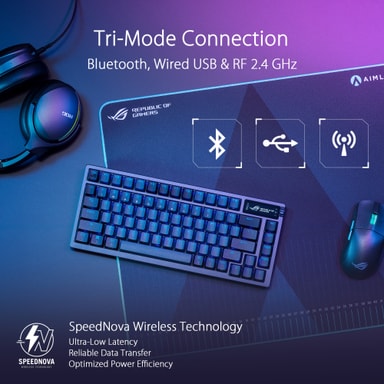 Asus ROG Azoth trådløst tastatur gir gaming et profesjonelt preg. Med mekaniske brytere som kan byttes ut, 3-veis-tilkobling, OLED-skjerm, RGB-belysning, 2000 timers batterilevetid og mye mer får du det perfekte verktøyet for å briljere.Les mer om produktet