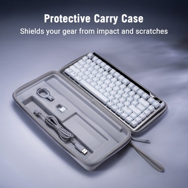 Det kompakte 75%-oppsettet sparer plass på skrivebordet samtidig som de viktigste tastene beholdes. Den har et 8-trinns justerbart hjul, et touchpanel på siden og en Rapid Trigger-bryter på baksiden som lar deg slå høyhastighetsmodus av og på umiddelbart. 6-lags demping sikrer en stillegående, premium følelse, alt beskyttet av et slitesterkt PBT-deksel.