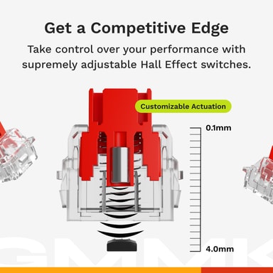Takket være dobbel hot-swappable-støtte på kretskortet kan du enkelt bytte dem ut med enten Glorious HE-magnetbrytere eller standard 3-pinners/5-pinners mekaniske brytere, noe som gir deg fleksibilitet til å tilpasse brytertyper uten lodding. Disse bryterne har justerbare aktiveringspunkter fra 0,1 mm til 4,0 mm, noe som muliggjør raske og presise tastetrykk tilpasset individuelle preferanser. Rapid Fire-modus frigjør tastelokket umiddelbart etter at det er trykket ned, noe som gjør det mulig å trykke raskere i opphetede øyeblikk.