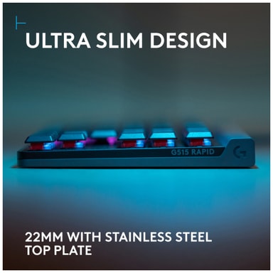 Logitech G G515 Rapid TKL lavprofilert gaming-tastatur har raske 0,1-2,5mm tilpassbare magnetiske analogbrytere, et ergonomisk 22mm slank, men robust design, og LIGHTSYNC RGB for en responsiv og stilig spillopplevelse.Les mer om produktet