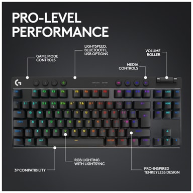 • Logitech G PRO X TKL Lightspeed Tactile trådløst gamingtastatur (sort)