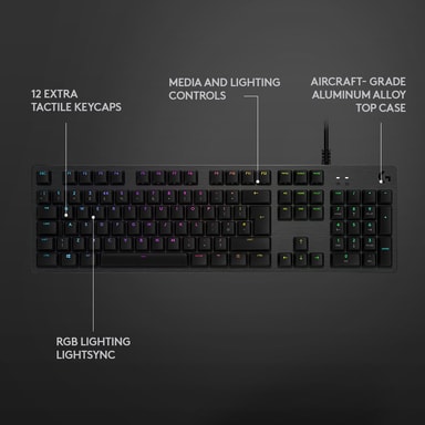 Hver knapp har tilpassbar RGB-belysning under tasten, og du kan velge mellom mer enn 16,8 millioner farger etter din personlige stil. Takket være Lightsync-teknologien vil tastaturet skinne i takt med handlingen på skjermen. Du kan til og med synkronisere fargene og belysningsmønsteret med de andre Logitech-G RGB-enhetene dine ved hjelp av programvaren Logitech G HUB.